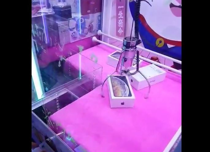 印尼男子「Amrozi」7日在臉書上傳4段影片,第一段影片只見他站在放置著3盒「iPhone X」的夾娃娃機前面,不停嘗試數次之後,終於成功夾到一盒,讓他忍不住開心的拿起「戰利品」對著鏡頭揮舞炫耀。