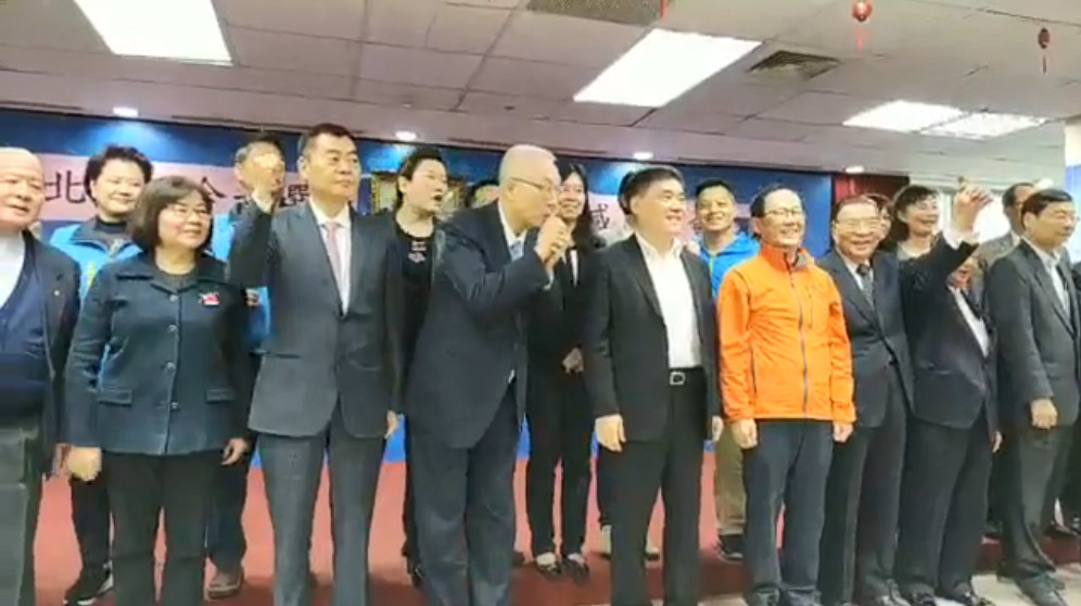 國民黨主席吳敦義13日一大早先率中央黨員赴桃園大溪頭寮謁陵,向逝世31周年的故總統蔣經國獻花致敬,再出席「台北市三合一選舉吳主席感恩茶會」,只見現場出席者齊力喊出國民黨加油、吳主席加油後,台下突然有人大喊「選總統!」讓吳敦義愣了2秒,急忙用手比出「噓」的動作,隨後也雙手緊握作揖等手勢示意支持者不要再喊。