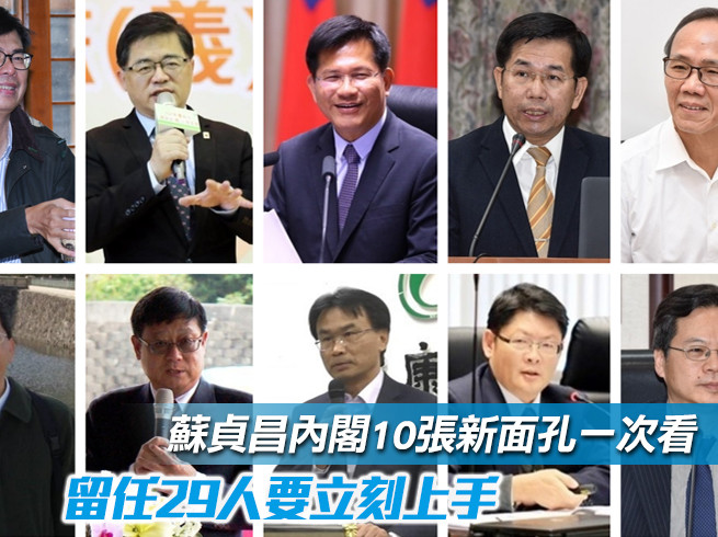 在蘇貞昌的內閣名單中,多數沿用賴清德內閣人選,僅10位「新面孔」,但各個來頭都不小,其中,包括:副院長陳其邁、秘書長李孟諺、教育部長潘文忠、交通部長林佳龍等人。