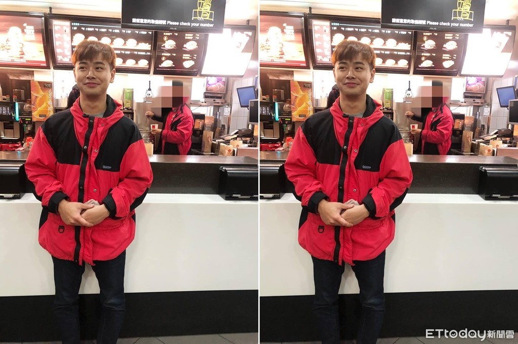 最好笑得是,網友陸陸一臉尷尬地在在櫃台前,身上那件外套與後方的店員極為相似,風衣都是走紅、黑兩種配色,乍看之下還真以為是麥當勞店員;但其實是有微小差別的,像是他兩袖子都是紅色,胸部兩塊則是為黑色,與店員兩手臂一紅一黑的外套設計。還是有些微的不同。