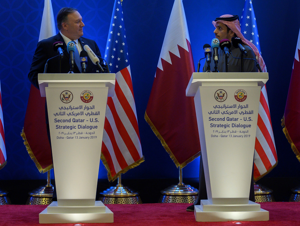 蓬佩奧(Mike Pompeo)在記者會上表示,各國抵制卡達已進入第19個月,這損害了區域內國家的團結。起初美國支持這項外交制裁,但至今似乎無法找出各國對於打擊伊朗的共識。對於美國來說,最重要的就是盡快解決這個外交危機,才能繼續推動俗稱「阿拉伯版北約」(Arab NATO)的「中東戰略聯盟」(MESA),加強與中東各國在軍事防衛、經濟外交上的合作。