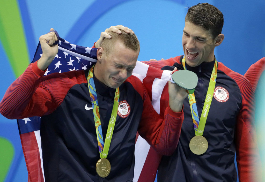 ▲美國游泳選手羅契特(Ryan Lochte)(左)與菲爾普斯(右)。(圖/達志影像/美聯社)