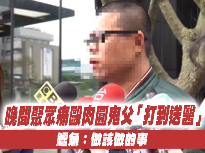新北市蘆洲一名42歲林姓男子因為兒子買肉圓沒加辣,氣得動手爆打妻小,賞巴掌、勒脖子又拖行數公尺,被氣憤的在地人士肉搜出住處並痛毆到送醫。警方調查,動私刑的男子中有一名綽號「鱷魚」的陳姓男子,他14日下午受訪時表示「沒有英雄不英雄的,只是做該做的事」。