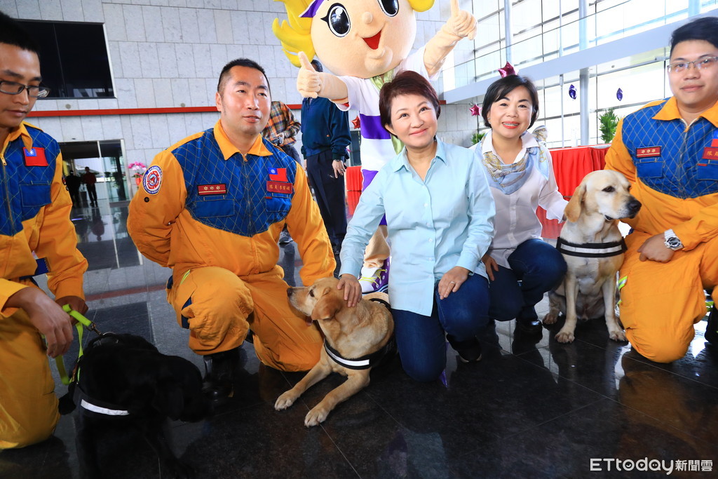 盧秀燕另欣賞役男賴禹諾拍攝「感謝消防」微電影,也與消防局4隻搜救犬互動;盧秀燕說,台中市目前有8隻搜救犬,其中3隻通過IRO、MRT國際認證,全世界只有3、40隻搜救犬獲此認證,中市占約10分之1,非常不容易。