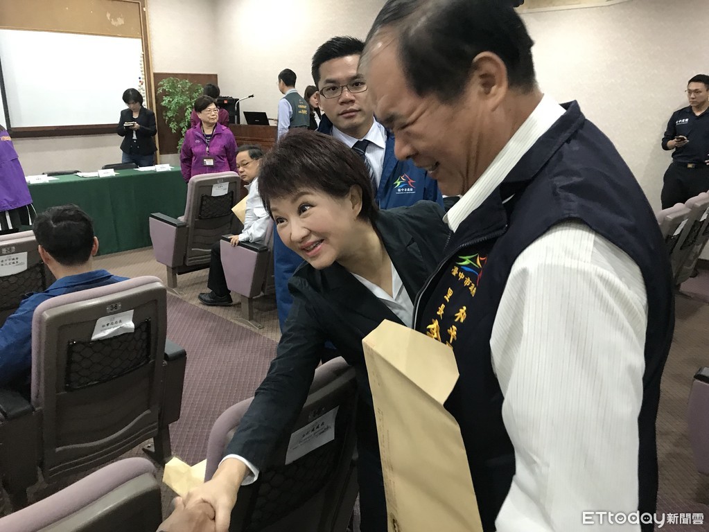 ▲台中市長盧秀燕與出席和平區里長親切握手。(圖/記者陳玉攝,下同)