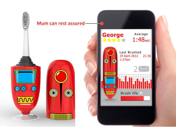 家裡有小寶貝的爸爸媽媽對於孩子的口腔保健肯定是一個頭兩個大,雖然剛開始會保持耐心的在旁邊協助並監督,但時間一久,也不可能全天候觀察。來自英國的創新公司PA Consulting Group發想出一概念性商品,可以透過手機應用程式監督小寶貝刷牙的時間以及使用頻率,並搭配可愛逗趣的外型;從今以後,小寶貝也能獨當一面囉。