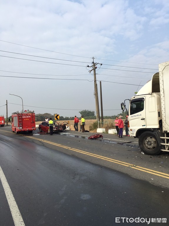 ▲台南市白河區下秀祐道路,發生一起死亡車禍,2部車輛發生對撞,其中1名吳姓駕駛人受困變形駕駛座上,救出時無呼吸心跳,經送醫急救仍傷重不治身亡。(圖/記者林悅翻攝)