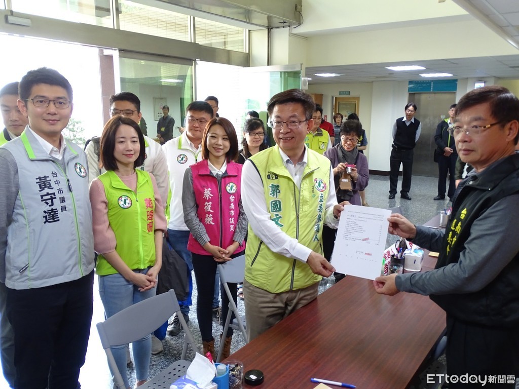 ▲台南市立委第2選區補選參選人郭國文,在來自全台各地的民進黨新生代議員陪同下,至台南市選委會登記參選。(圖/記者林悅翻攝,下同)