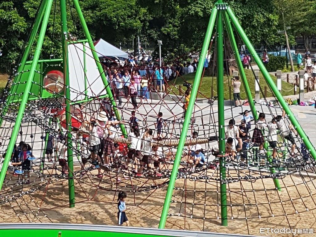 擁有20公尺長彩繪溜滑梯的中和員山公園去年6月啟用,園內還有親子滑草坡、室外滑索道等趣味遊具,簡直像一座小型遊樂場,另外,園內還有沙坑、盪鞦韆、懸吊滑軌、攀爬網等,假日都會吸引非常多親子前來遊玩。