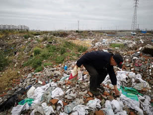 在江蘇省南通市有一著名的「南通家紡城」,在近年來家紡產業已成為該地的經濟支柱,但在享受該產業帶來的財富同時,日漸增多的家紡垃圾也成為了當地最大的麻煩。該市磨框村一村民指著眼前的百平米垃圾山說,「原先這裡是我們的村莊,去年拆遷時說要建商品房,現在卻成了垃圾場。」