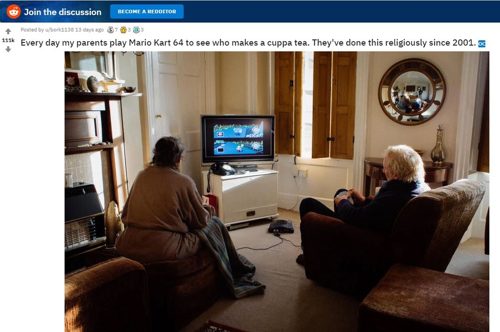電動對抗18年!一名來自丹麥的網友在外國知名論壇「Reddit」分享了一張照片表示,自己的父母每天都會一起打任天堂的《瑪利歐賽車64(Mario Kart 64)》遊戲,雙方還約定好輸的要泡茶給對方,這樣的甜蜜對戰已持續了18年,2人至今還是玩得相當開心。