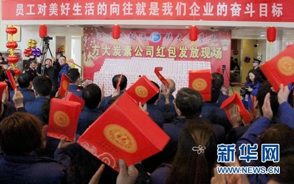 ▲甘肅公司發放台幣5億元年終獎金,現金堆成一整面牆。(圖/翻攝自新華網)
