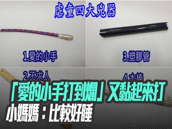 從警方提供的「兇器」照片可見,愛的小手的前端手掌部份都被打掉了,前端僅露出裡頭的塑膠棍;塑膠管打到碎裂了;木棒打到變形,還用膠帶黏起來,可見打人力道之大。比對在醫院診間躺著的冰冷小小身軀的傷痕,不敢想像女嬰受虐的場景。