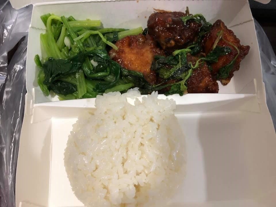 女網友在臉書不公開社團「爆怨公社」無奈發文,「4塊帶骨三杯雞+菠菜、小碗的白飯,70元」,還不忘用時事梗調侃「老闆我沒加辣啊!」