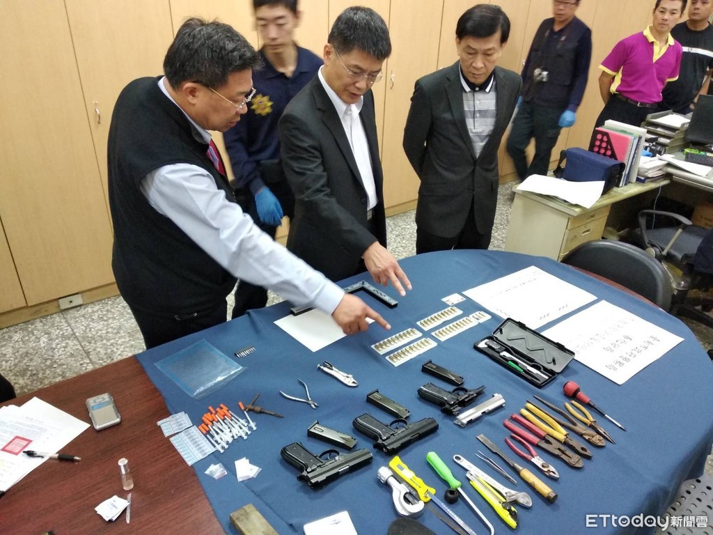 ▲台南市善化警分局偵查隊前往六甲區,查捕涉案的陳姓竊案嫌犯時,意外在其房間內查獲2把改造手槍及43顆子彈與安非他命毒品。(圖/記者林悅翻攝)