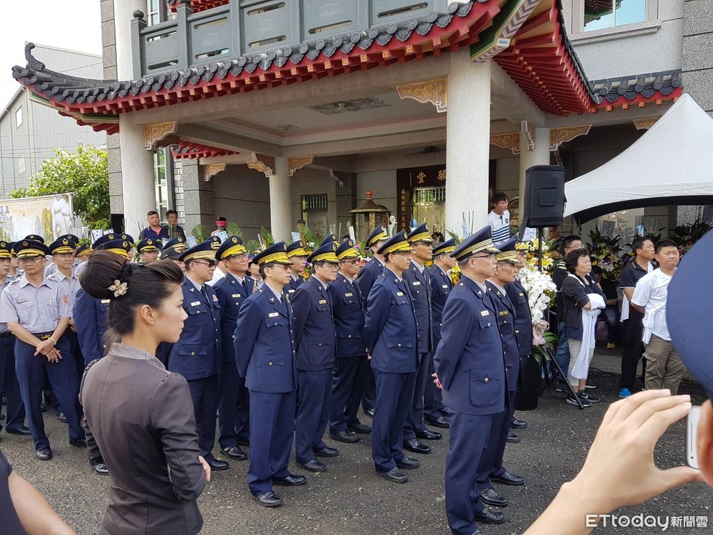 ▲台南市警麻豆分局警備隊長許文福開槍自戕,在學甲區法源靈山寶塔舉行告別式。(圖/記者林悅翻攝)