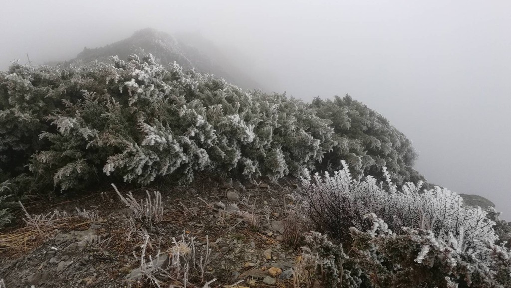 ▲玉山尚未飄初雪,僅出現霧淞。(圖/氣象局提供)