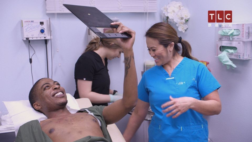 第二集則是戰痘醫師決定進行一場擠爆囊腫的視覺饗宴!患有多發性皮脂腺囊腫的塔雅吉,從脖子到胸口全部長滿大大小小的腫塊,甚至遍佈全身,數量居然還高達60顆!這些頑強的皮脂腺囊腫成熟後時不時有著一觸即爆開的風險,讓塔雅吉苦不堪言,轉向戰痘醫師尋求協助,在解決它們的同時珊卓拉李表示皮脂腺囊腫最有趣的地方在於一個人身上會長很多顆,但每顆擠出來的樣子都不盡相同!有些像是奶油狀、橡皮筋狀或者是緞帶狀;有些形狀還像是豬小腸!進行完這場擠爆囊腫派對的治療後讓塔雅吉大吃一驚,除了讓鎖骨重見光明,從此以後可以大方脫掉上衣外,無「膿」一身輕的感覺也讓他直呼像是卸掉454公斤的膿!TLC旅遊生活頻道《戰痘醫師》每週五晚間11點首播,一連兩集精彩的節目內容,看戰痘醫師珊卓拉李輕易制伏痘痘與囊腫,貼心提醒各位觀眾吃飽飯後慎入,並且請小心服用!