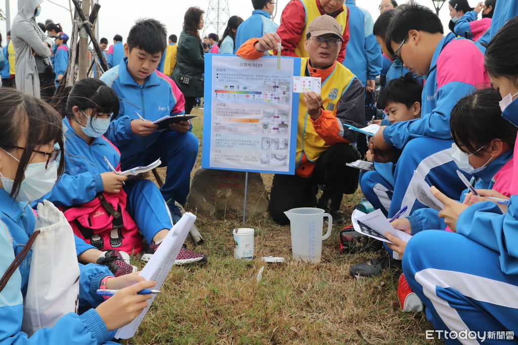 ▲中華醫大護理系老師和水資源中心志工,帶領仁德國中學生進行水質監測戶外教育,引導學生守護河川和自然環境的重要。(圖/記者林悅翻攝,下同)