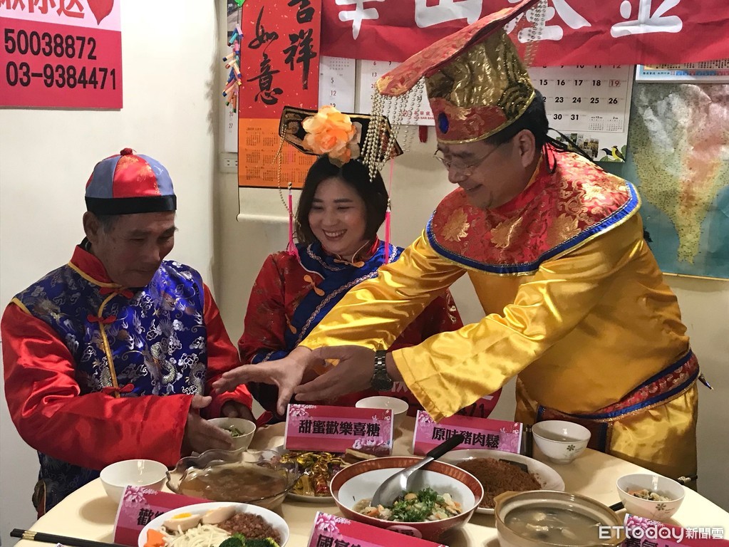 ▲▼台化龍德廠愛心社與華山基金會宜蘭縣站的「COSPLAY千叟宴」,與75歲吳姓阿公提前圍爐,現場溫馨歡樂。(圖/記者游芳男翻攝,下同)