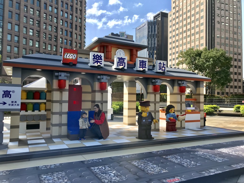 丹麥知名玩具品牌LEGO,首次在台灣辦「年貨大街」,與統一時代百貨台北店合作,在2樓戶外廣場蓋起「巨大樂高」做成的車站、電影院、年夜飯場景,吸引路過民眾「進站」打卡,此外還有年夜飯限定版放大30倍場景還原,而且還有大紅包看起來超喜氣。