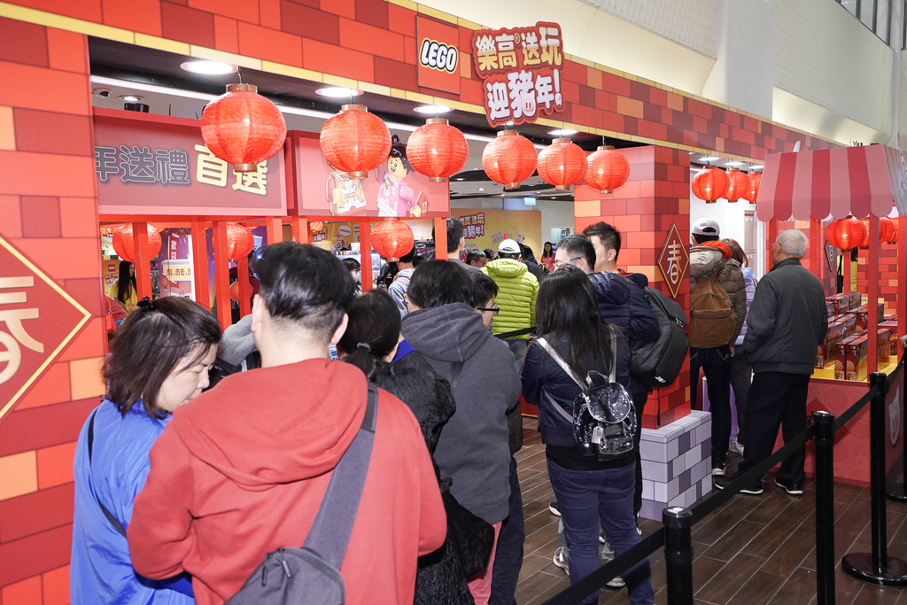 源自西方的樂高玩具,首次針對農曆新年推出主題產品,消息一出引來許多關注,包括「年夜飯組」與「舞龍舞獅組」都是以討喜的紅色為主色,而舞龍舞獅組可透過旋轉裝置,將上方的人物上下擺動,增加躍動感,也相當符合新年熱鬧的氣氛,除部分數量外,其他全集中在統一時代百貨地下二樓的「樂高年貨大街」銷售,引發民眾前往排隊。