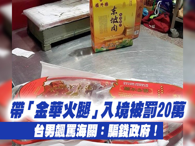 ▲帶「金華火腿」入境被罰20萬 台男飆罵海關:騙錢政府!。(圖/翻攝自關務署台北關)