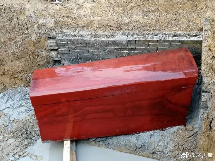 ▲ 考古小組將棺木取出後,發現它外觀閃閃發亮,就像剛漆好的一樣。(圖/翻攝自「考古君」微博)