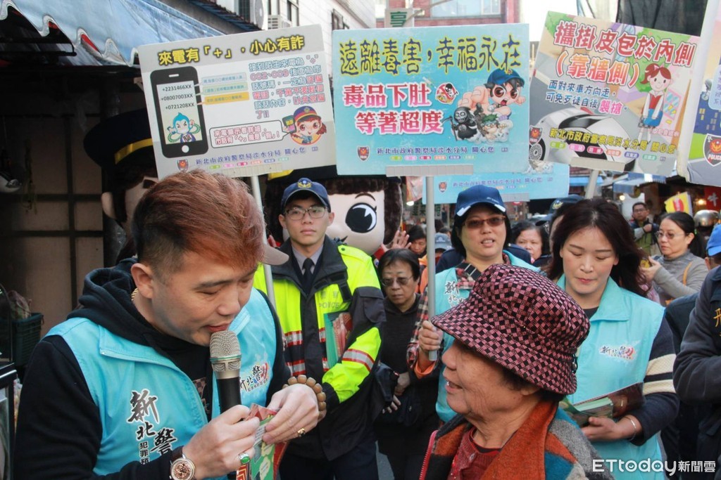 農曆新年腳步近了,淡水警分局偵查隊18日上午帶領分局的犯罪預防宣導團隊10餘人,浩浩蕩蕩地前往淡水傳統市場宣導「防竊、防搶及防詐騙」,現場更親自示範如何預防年節購物遭扒竊的小撇步,還與買菜民眾玩起有獎徵答,民眾相當捧場直呼「真的很暖心!」