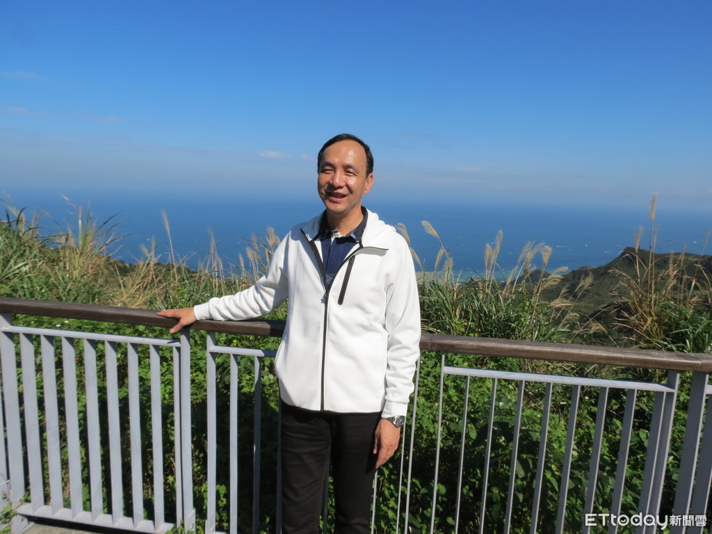 ▲前新北市長朱立倫19日前往新北市瑞芳區報時山步道。(圖/記者羅婉庭攝)
