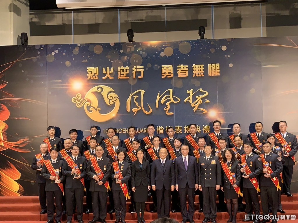 ▲行政院長蘇貞昌頒獎表揚內政部消防署2018年鳳凰獎得主消防、義消人員。(圖/記者陳崑福翻攝,以下同)