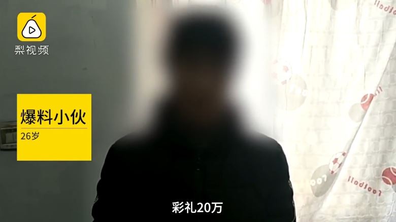 根據《梨視頻》報導,這名出生於農村家庭的青年當初幸運考上大學後,便留在城市內工作,月薪約3千多人民幣(約新台幣1.3萬以上),自己工作4年多也才存了7萬多人民幣(約新台幣31萬)。只是當他向女友家人提親時,沒想到對方母親竟然向他索取20萬禮金(約新台幣91萬),還要支出其他開銷包括買房子、酒席、首飾以及鑽戒等,全部加起來差不多100萬元(約新台幣455萬),讓窮苦的他根本無法負擔。
