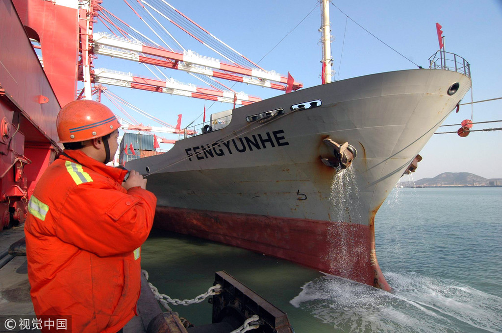 ▲青島首條台灣大三通海運直航貨輪「中外運基隆」輪。(圖/視覺中國)