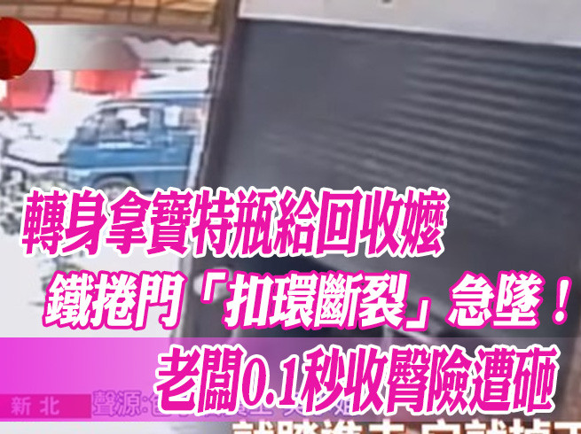 驚險躲劫!新北市中和一家包子店日前打烊,老闆在關閉電動鐵捲門時,偶然發現路口有位阿嬤正在撿拾資收物,因此轉身走進店內拿取寶特瓶,不料老闆才剛踏進店裡,原本緩慢關閉的鐵捲門突然扣環斷裂,瞬間急遽墜下,險些就砸到老闆。