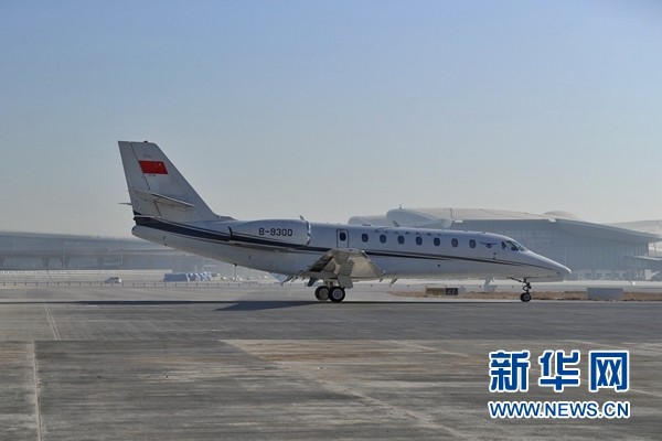 ▲一架「獎狀680」校驗飛機平穩降落在北京大興國際機場西一跑道上。(圖/翻攝新華社)