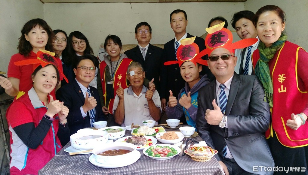 ▲仁德青商會力挺華山基金會,捐助2萬元作為孤老年菜金,齊聚華山服務長輩蘇阿公家,熱年菜、貼春聯提前圍爐,讓阿公感受年節溫暖。(圖/記者林悅翻攝)