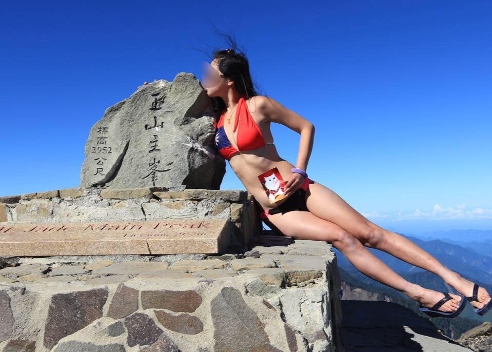 36歲的吳女,因與朋友打賭,輸了就要穿著比基尼在山頂拍照,她依約完成,並在4年內成功挑戰百岳,換過至少97套比基尼,縱使也有山友不認同這樣的做法,她還是堅持做自己,也經常在臉書分享美照,因此打出「比基尼登山客」名號。