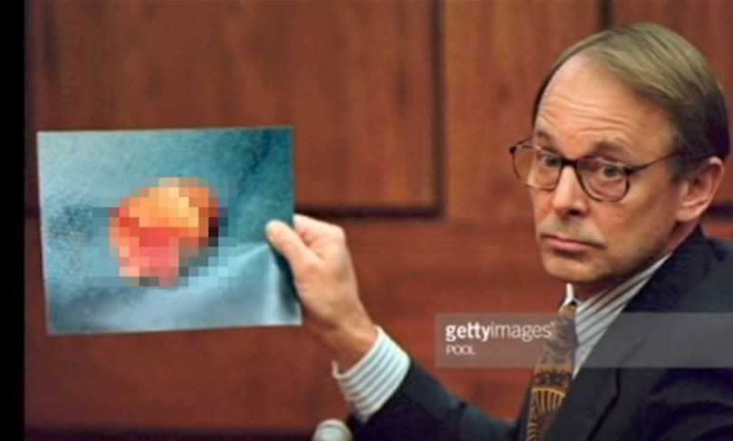 ▲法庭上展示遭閹割的下體照。(圖/翻攝自youtube)