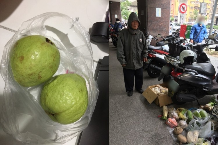 彰化一名80歲巫爺爺,每天搭一小時公車到台中文心路郵局柱子下販賣蔬果,「連過年都不敢休息」。有網友聽聞後到現場捧場,發現郵局人來人往卻都沒有人向爺爺購買蔬果,自己買了之後才發現品質其實不差,買的2顆芭樂都超大顆,因此上網分享,希望大家經過時可以多幫忙,讓爺爺在寒冬中能夠早點收攤休息。