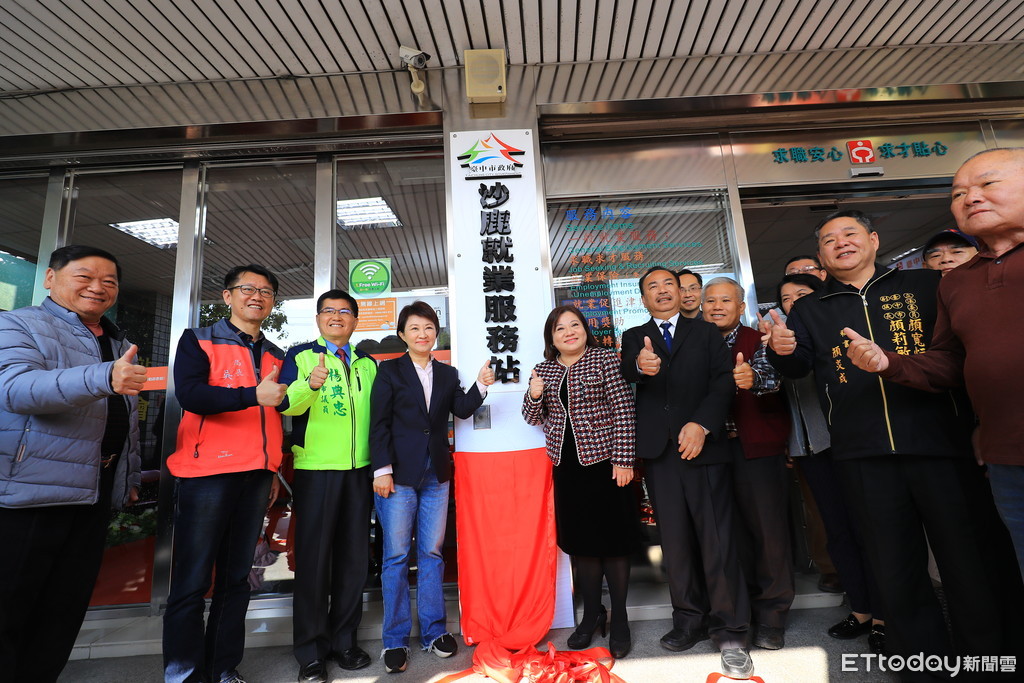 ▲台中市長盧秀燕等人出席沙鹿就業服務站揭牌。(圖/台中市政府提供)