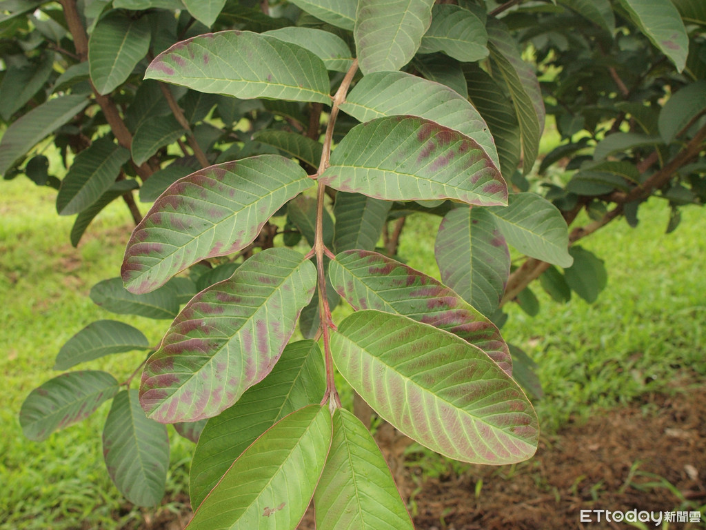▲番石榴寒害後葉片轉紅,需減少留果量以維持果實品質。