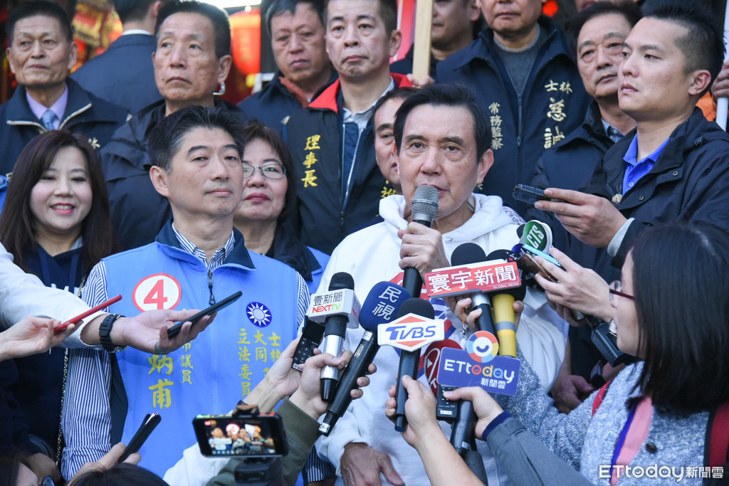▲馬英九陪同陳炳甫掃街。(圖/記者林敬旻攝)