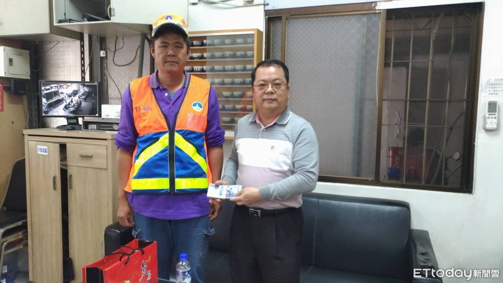 ▲失主陳先生〈右〉,十分感謝讚許清潔隊員黃宏隆拾金不昧。(圖/記者林悅翻攝)