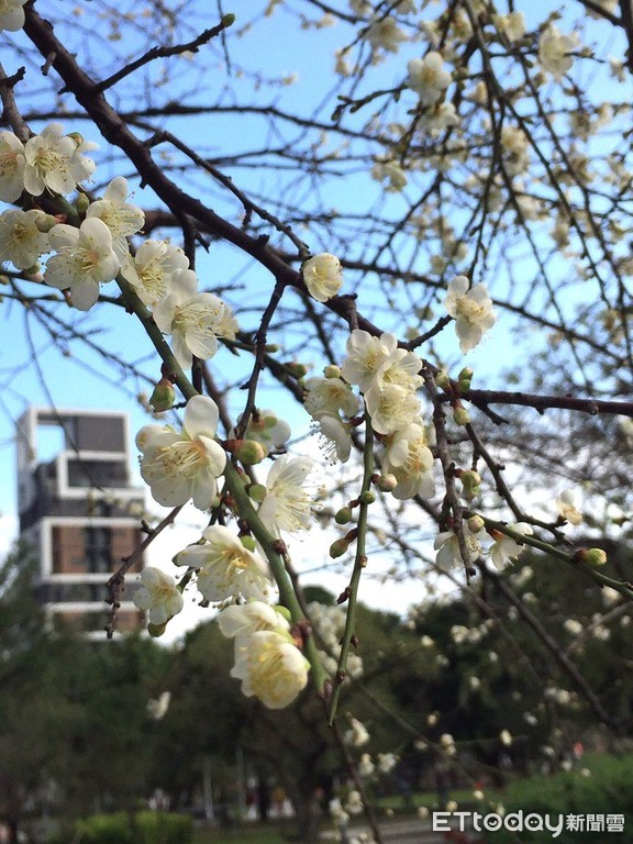 寒風颼颼的農曆年節期間,台北市榮星花園公園、民生公園的梅花不畏寒冬悄悄綻放,樹上的小白花已綻放在枝頭隨風搖曳,落下的花瓣就像雪花飄落般的浪漫,可以聞到特有的清香,美景引人入勝,香味讓人逗留,現正是梅花含苞待放的季節,歡迎大家來公園感受梅花的高雅與清新。