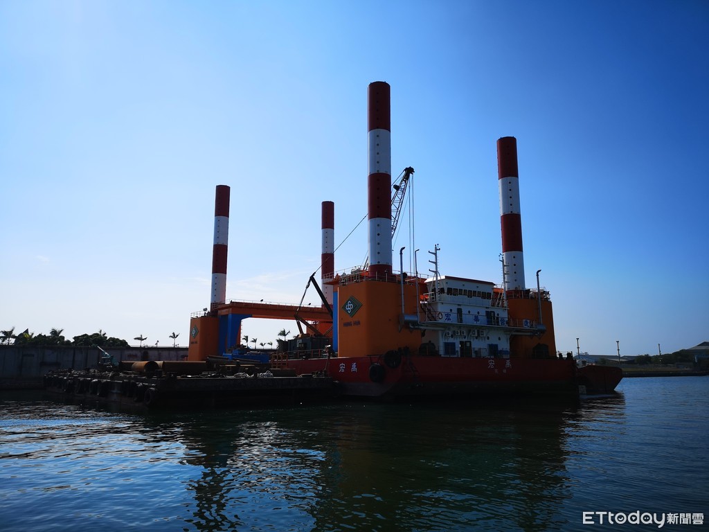 ▲目前大港橋正在興建旋轉機構。(圖/記者洪正達攝)