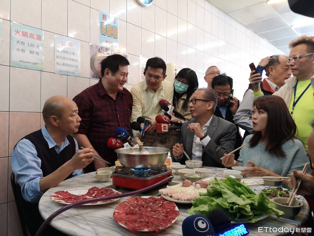 ▲韓國瑜在鹽埕區一家汕頭火鍋店用餐,笑罵陳其邁:「沒江湖道義」 。(圖/記者洪正達攝)