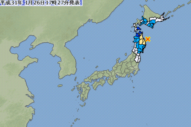 日本東北部岩手縣26日當地時間17時23分(台灣時間16時23分)再度傳出地震消息。根據氣象廳初步數據顯示,此次地震規模5.7,震源深度約30公里,最大震度4,目前並沒有海嘯風險。