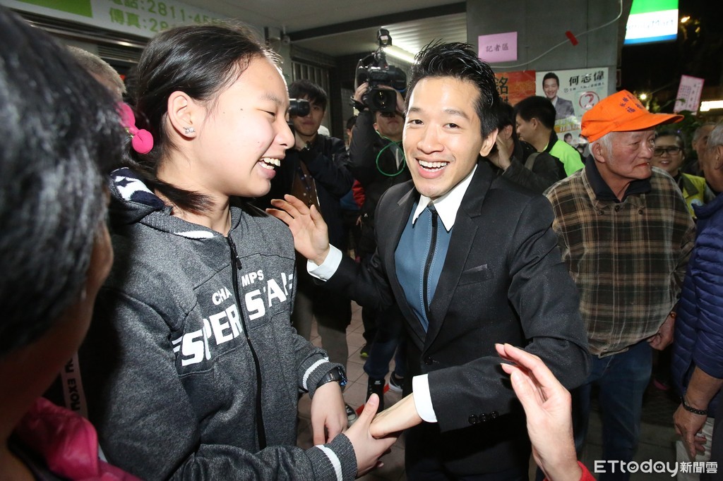 ▲立委補選當選人何志偉感謝現場選民。(圖/記者季相儒攝)