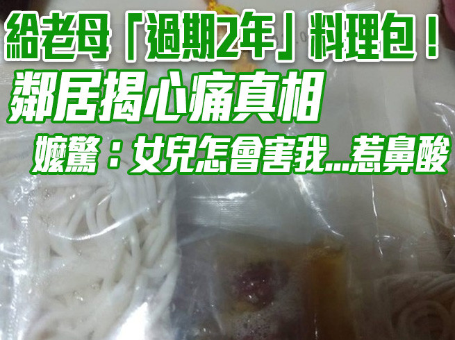 雖然和老奶奶非親非故,但身為鄰居的她實在看不下去,不禁怒道「若真如老奶奶說的,前幾天女兒拿給她吃的,我想問妳一句:妳良心不會痛嗎?給妳媽吃過期兩年的料理包,妳都不怕你媽會怎樣嗎?虧你媽還說妳孝順,說妳常常拿吃的給她。」