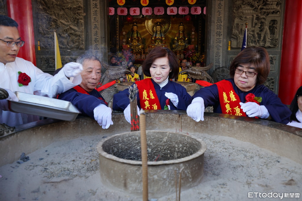 ▲28日,宜蘭縣長林姿妙在羅東鎮爐源寺「送神筅黗祭儀」,喜迎豬年。(圖/記者游芳男攝,下同)